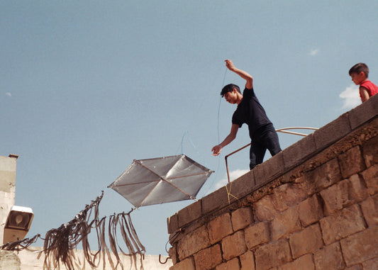 An oasis destroyed by extraction. Children flying kites despite lockdown. Dream symbols erased. Earthquake fragments suspended.