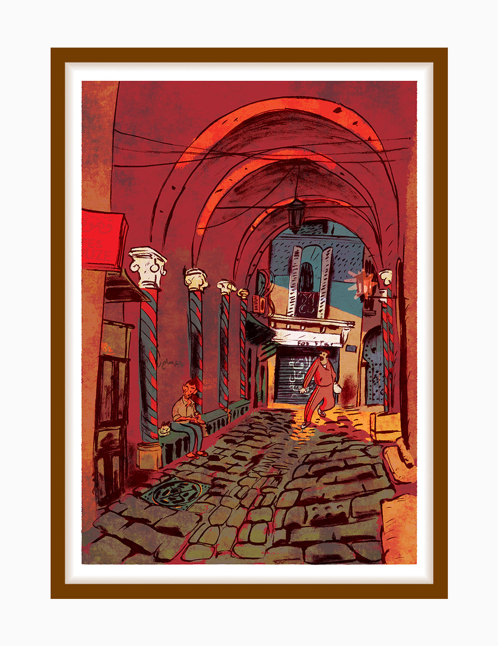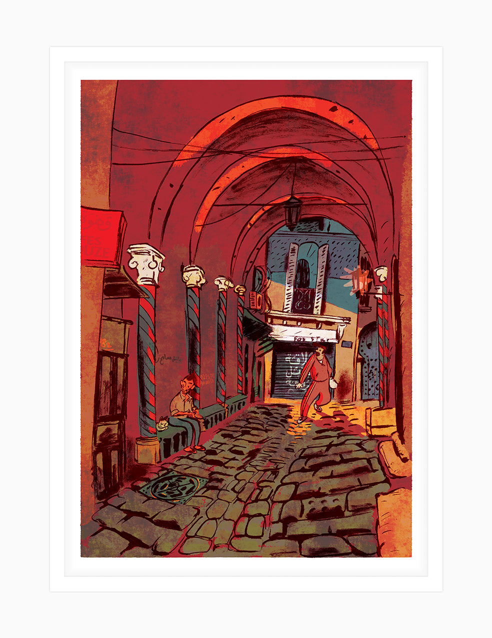 Shennawy is an Egyptian comics artist and graphic designer known for his socially engaged comics published in TokTok magazine, which he co-founded in 2011. He is also a co-founder of the CairoComix Festival, established in 2015. His work combines striking graphic elements with colorful, illustrated urban scenes. Through his art, Shennawy explores themes of tradition, modernity, and social change.